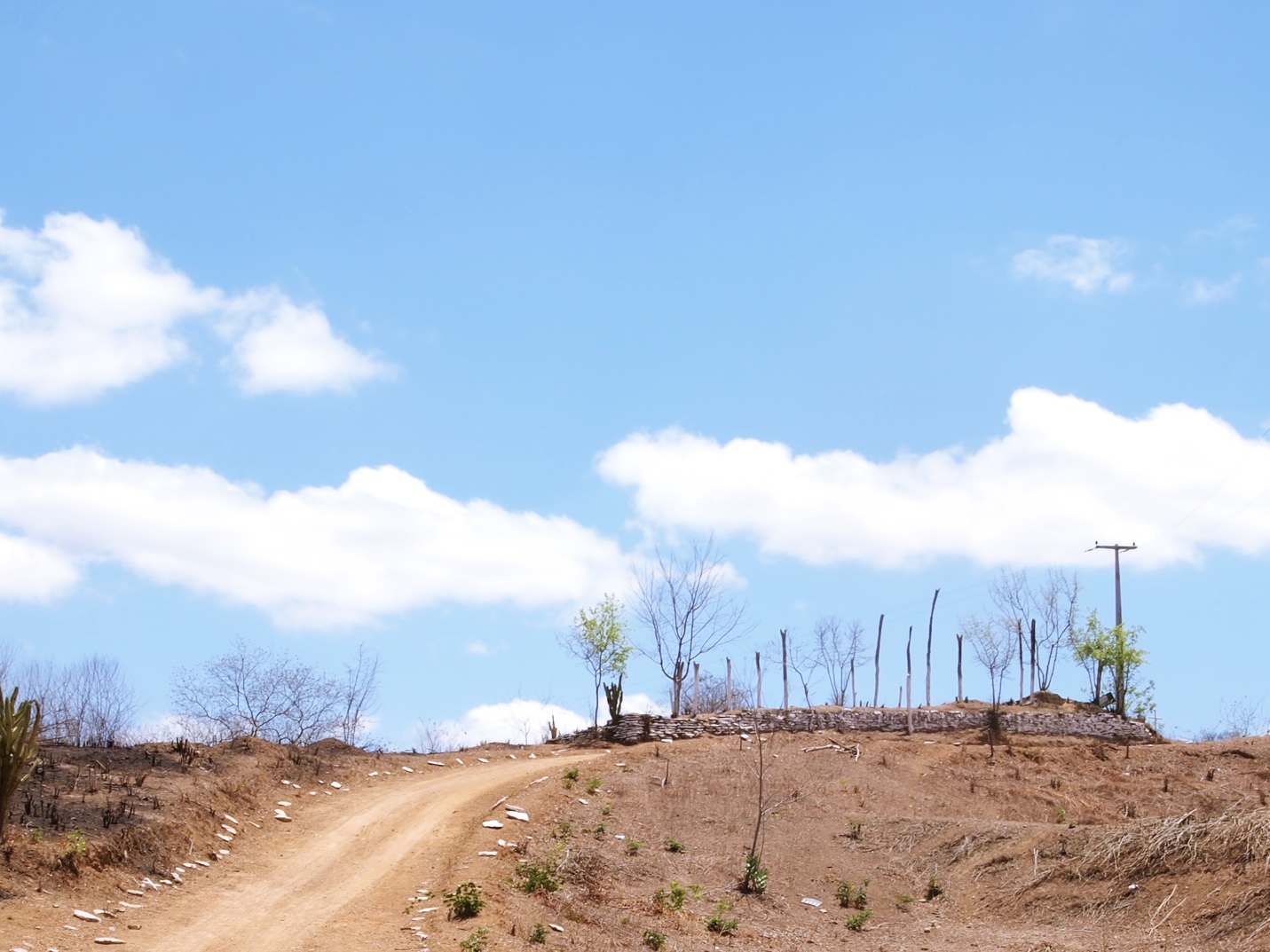 A curiosidade nos leva a conhecer o lugar, que fica depois da pequena colina atrás da igreja. Há um caminho entre a caatinga, que a pequena 125cc vai percorrendo sem problemas, embora eu sempre fique apreensivo quando à possibilidade de um pneu furar.