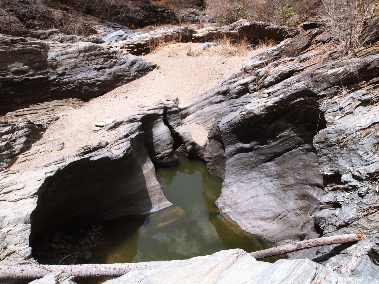 O Caldeirão de pedras parece ser bastante fundo e acumula água por muito tempo, tanto que quando passei por lá, cerca de 8 meses depois das chuvas, ainda havia água. Na estação chuvosa muitos são levados até lá pelo banho nas águas que correm entre as serras e vão se acumulando na formação rochosa.