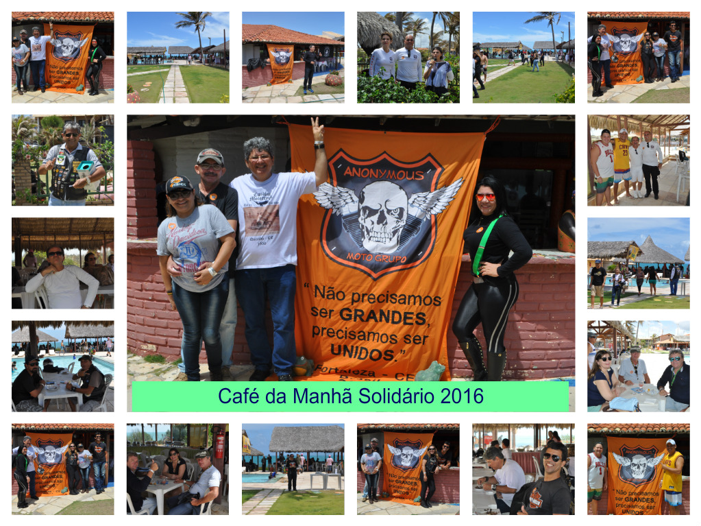 No último domingo 20 de novembro o Anonymous Moto Grupo (AMG) promoveu o Café Solidário Anonymous e Amigos no Hotel das Falésias na Praia das Fontes, a 87 km da capital cearense. A ação solidária beneficiou o Lar Bom Samaritano, que abriga e cuida de vinte e dois idosos abandonados do município de Beberibe, que fica localizado a 70 km de Fortaleza.