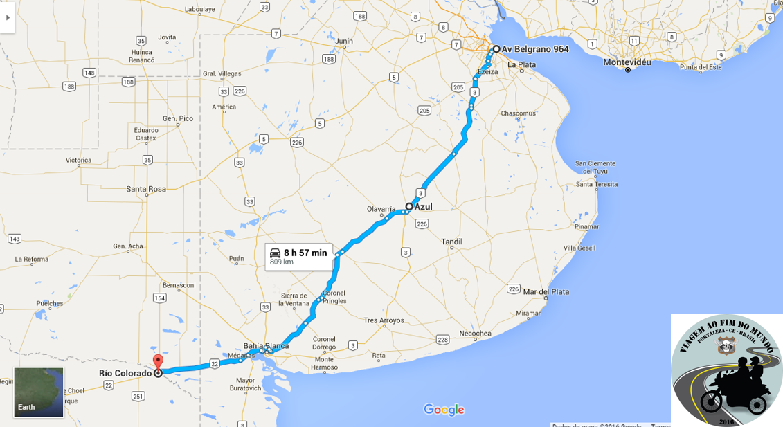 Saímos da aprazível e cheirosa Azul (plantações de alfazema na praça central, em frente ao nosso hotel) um pouco tarde, por volta das 10h e seguimos pela ruta 03 ate a cidade de Bahia Blanca onde de última hora mudamos nosso roteiro e seguimos, não mais pela ruta 03 conforme o planejado e sim, pela ruta 22 até a cidade de Rio Colorado.