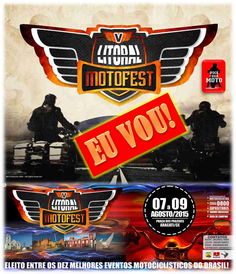 Mais isso é só o começo! O Você e Sua Moto continua em 2015 com a corda toda! No segundo semestre, promoverá o Ubajara Motoindoor 2015 (01 e 02 de Agosto), apoiará o Litoral MotoFest (Aracati – 07 a 09 de Agosto) e realizará o Quixadá Motoindoor 2015 (31 de out- 01 e 02 de Novembro). Sobre o Litoral Motofest, o presidente Ígor do Moto Clube Aracati afirma que “Nós estamos muito agradecidos por aceitarem a parceria entre o Litoral Motofest e o  Você e Sua Moto. Estamos trabalhando para que a quinta edição do evento seja mais uma vez um sucesso, pois o motociclismo no Ceará vem crescendo cada vez mais e com isso surge a necessidade de fazermos um evento sempre pensado para os motociclistas, e isso só conseguimos, por conta das parcerias de sucesso firmadas como a nossa”.  Vamos em frente sempre!