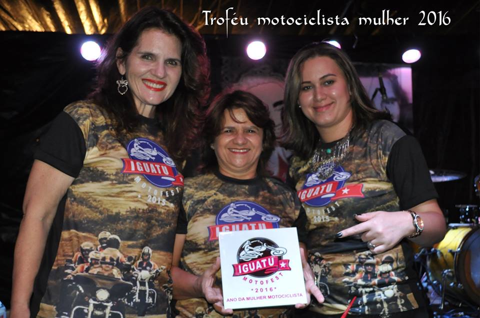 O Iguatu Motofest 2016 já está a todo vapor! Será na semana de 18 a 22 de maio de 2016, com o tema “ 2016 – Ano da Mulher Motociclista”. Na última noite do evento (sábado), o Prefeito Aderilo Alcântara nomeou a pilota Germana Maia de Menezes guardiã do Troféu do Evento 2016, dando-lhe o compromisso de retornar à Iguatu em 2016 com o troféu e pilotando sua moto, acompanhada de um comboio feminino. Germana afirmou que “Gostaria de agradecer aos responsáveis do portal Você e Sua Moto por ter me escolhido para representar essa classe feminina. Quero dizer o quão honrada e feliz eu fiquei em receber esse troféu. Eu nunca pensei que receberia tanto crédito em viajar e realizar essa missão.Por fim, quero agradecer a Deus e ao meu esposo (Marcelo) que tanto me incentiva e me apóia nas minhas aventuras”.