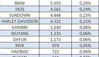 O destaque negativo ficou por conta da KTM, que apesar de não fazer praticamente nenhum tipo de publicidade no país é conhecida e respeitada internacionalmente pela qualidade de suas motos. Em 2011 a KTM vendeu apenas 88 motos no país, uma média  de 7,3 motos emplacadas por mês!