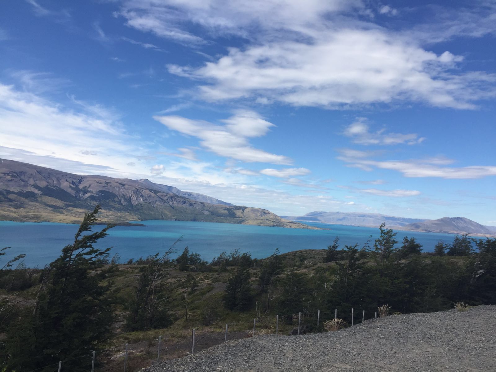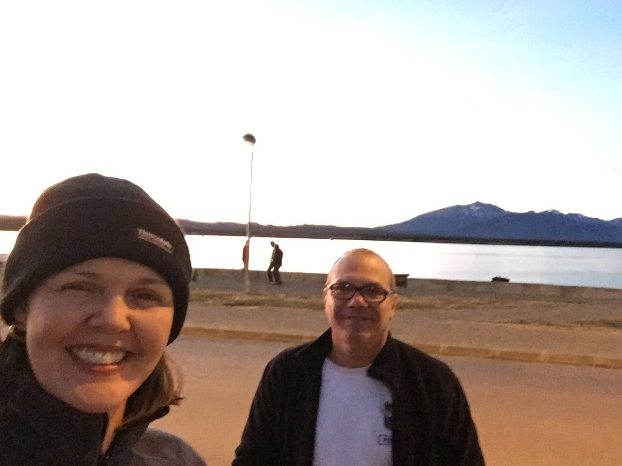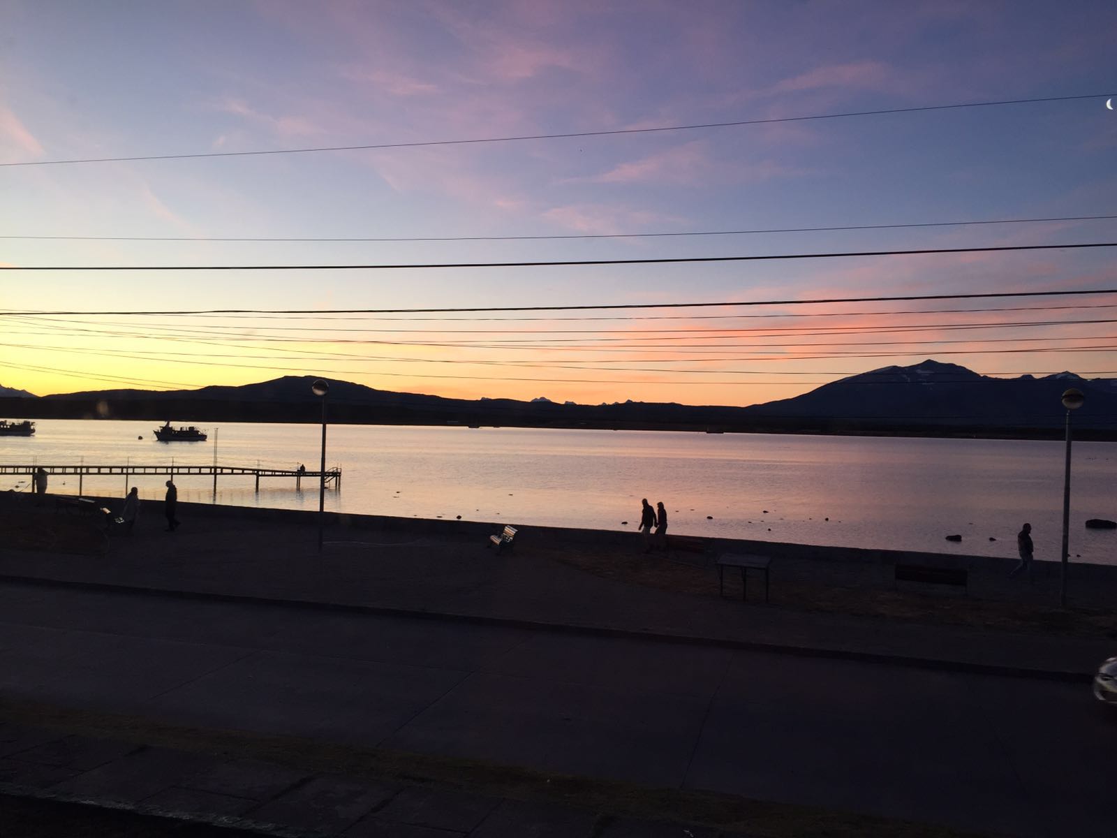 Depois do fim do descanso de 3 dias em Ushuaia. Na estrada novamente com novos caminhos sendo decididos e bem acertados. Dia bem puxado na estrada: quase 800km!! Muito cansativo! Para nós mulheres um pouco mais, pois como há trechos enormes sem posto de gasolina, significa sem banheiro! Mas valeu a pena todas as aduanas, atravessar novamente de balsa o estreito de Magalhães e chegar a Puerto Natales que é uma graça! Cidade pequena, mas bem charmosa, com sua beira mar de frente para as lindas montanhas onde o sol se põe as 22h, foi um presente no final da viagem!