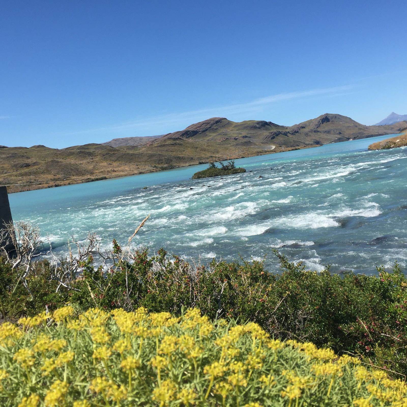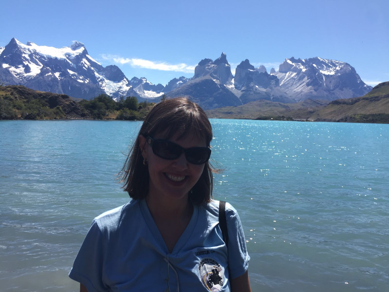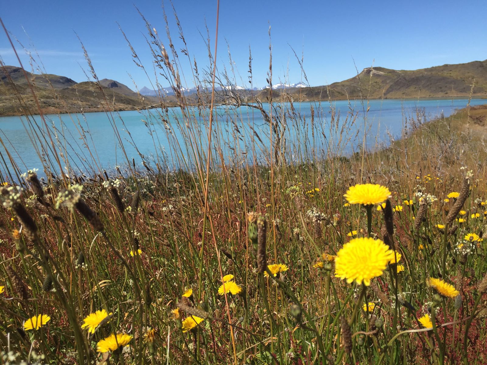 Mais um dia de admiração pela pintura da natureza. Torres del Pine é o parque nacional mais visitado da América do Sul. Entre muitas montanhas existem três torres de pedra que permanecem sem acúmulo de neve, mesmo no inverno mais rigoroso, pois são esguias e entre todas as montanhas brancas, sua cor parece azul pelo reflexo do gelo branco e por isso seu nome PAINE, que significa azul. Também o azul esverdeado das águas do lago Gray contrasta com a cor das montanhas criando uma paisagem deslumbrante! E as flores…estão em todos os lugares! Encantada com a Patagonia!